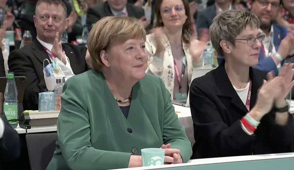 Впервые за более чем шесть лет на съезд пришла Ангела Меркель, которую зал встретил аплодисментами
